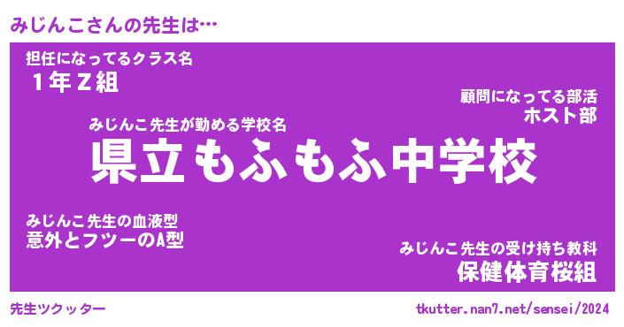 | ピコ太郎風あだ名 | 『ミコ四郎』『ピミ一郎』『ミジ六郎』 |