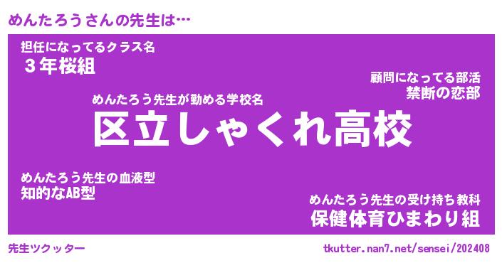 | ファンタジー風あだ名 | 『メンフェル』『エターナルメンタロウー』 |