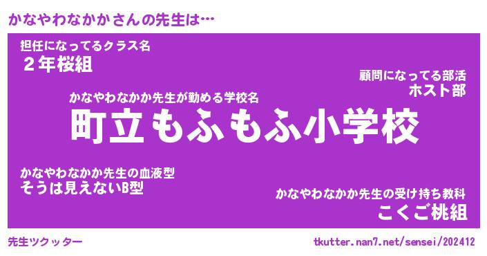 | ヘコむあだ名 | 『かなにゅー』『牛乳』『かなっちょ』 |