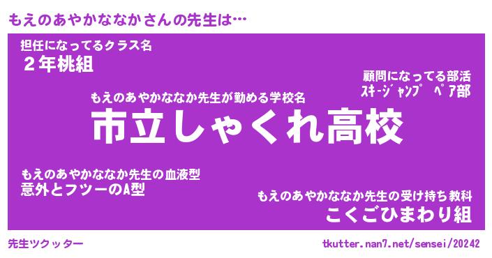 | ヘコむあだ名 | 『もえっふぃ~』『なまこ酢』 |