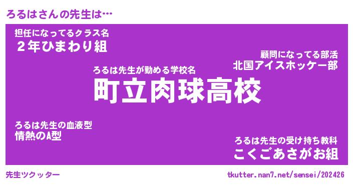 | ヘコむあだ名 | 『ろるふぇ~』『なまこ酢』 |