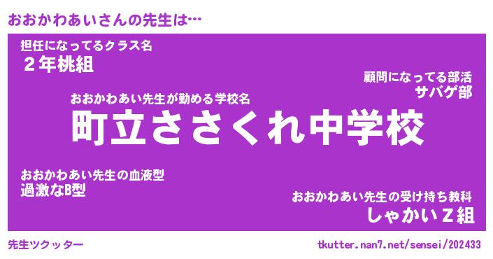 | ヘコむあだ名 | 『おおもー』『なまこ酢』『おおを』 |