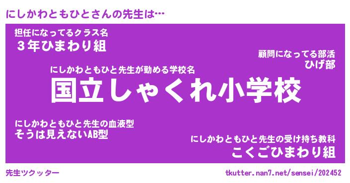 | 胡散臭い通販商品みたいなあだ名 | 『必ず成功する霊験あらたかなお札…その名も「にしかわともひと」』 |
