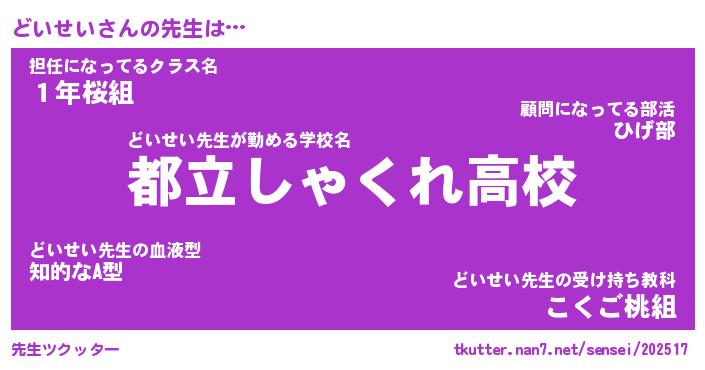 | 意味不明あだ名 | 『ペロリンどいせい』『永久保存どいせい』 |