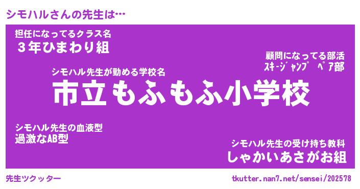 | 意味不明あだ名 | 『ペロリンシモハル』『永久保存シモハル』 |