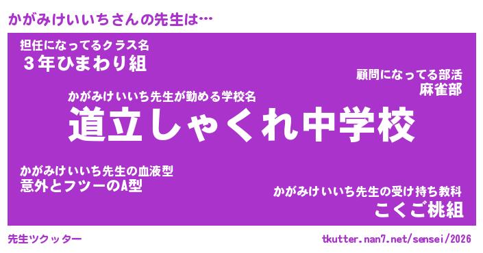 | 肩書あだ名 | 『かがみけいいち御曹司』 |