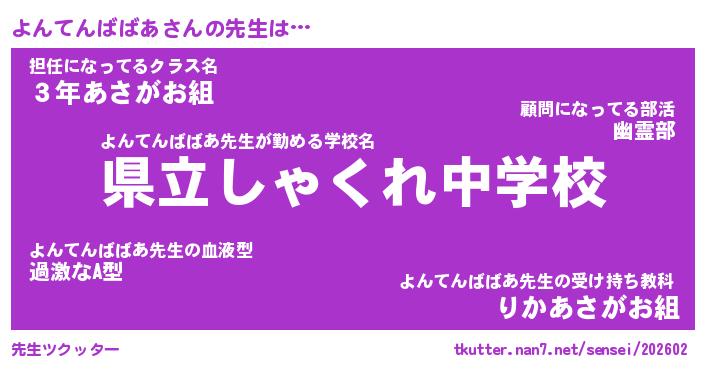 | 欧米人風あだ名 | 『マイケルよんてんばばあ』 |