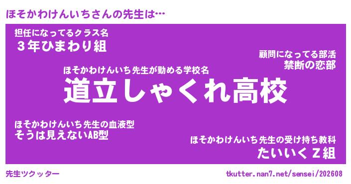 | 胡散臭い通販商品みたいなあだ名 | 『モテモテ間違いなし霊験あらたかなお札…その名も「ほそかわけんいち」』 |