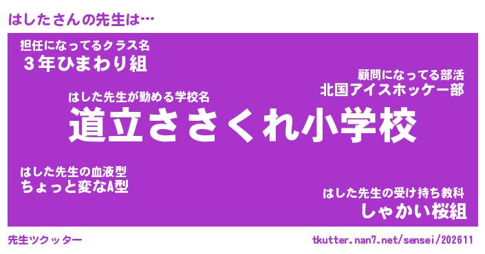 | ヘコむあだ名 | 『はしもー』『つくし』『はしを』 |