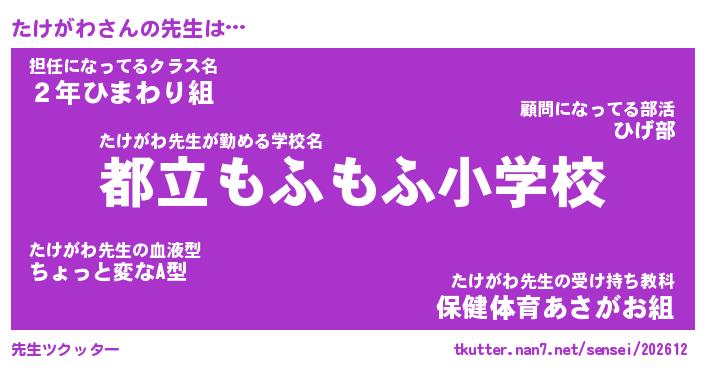 | ポケモン風あだ名 | 『タケチュウ』『タケガダネ』 |