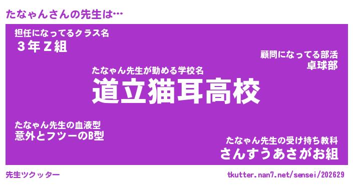 | ピコ太郎風あだ名 | 『タコ次郎』『ピタ三郎』『タナ史郎』 |