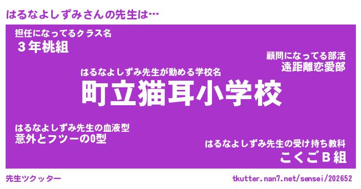 | 2回繰り返すあだ名 | 『はるはる』『ははるる』『ぬるぬる』 |