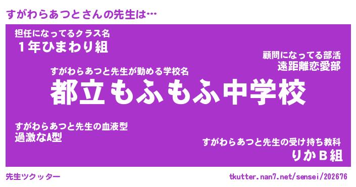 | 胡散臭い通販商品みたいなあだ名 | 『モテモテ間違いなし水晶球…その名も「すがわらあつと」』 |