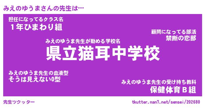 | 男性向けラノベタイトル風あだ名 | 『みえのゆうまの憂鬱』 |