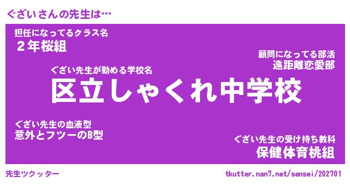 | ヒーロー風カッコイイあだ名 | 『スーパーグザイ』『ウルトラぐざいマン』 |