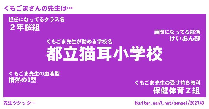 | 意味不明あだ名 | 『ペロリンくもごま』『永久保存くもごま』 |