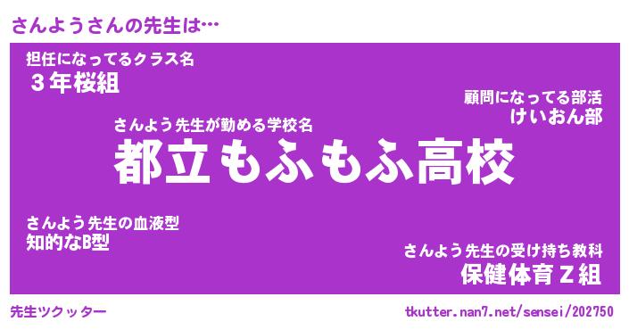 | 意味不明あだ名 | 『ペロリンさんよう』『永久保存さんよう』 |