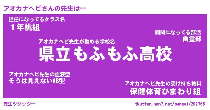 | ピコ太郎風あだ名 | 『アコ史郎』『ピア次郎』『アオ六郎』 |