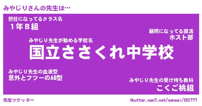 | ファンタジー風あだ名 | 『ミヤフェル』『エターナルミヤジリー』 |