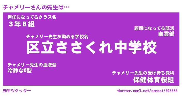 | ヒーロー風カッコイイあだ名 | 『スーパーチャメリー』『幻影騎士チャ』 |