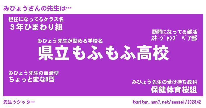 | 意味不明あだ名 | 『ペロリンみひょう』『永久保存みひょう』 |