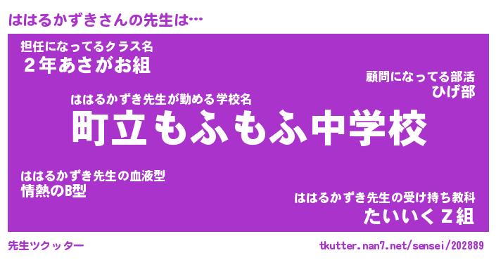 | 自動車の名前っぽいあだ名 | 『ハハティマ』『ハクア』『デミハ』 |