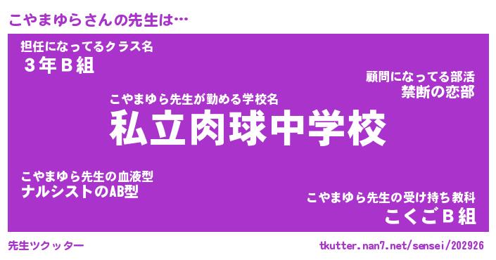 | ファンタジー風あだ名 | 『コヤフェル』『エターナルコヤマユラー』 |