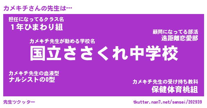 | ファンタジー風あだ名 | 『カメフェル』『エターナルカメキチー』 |