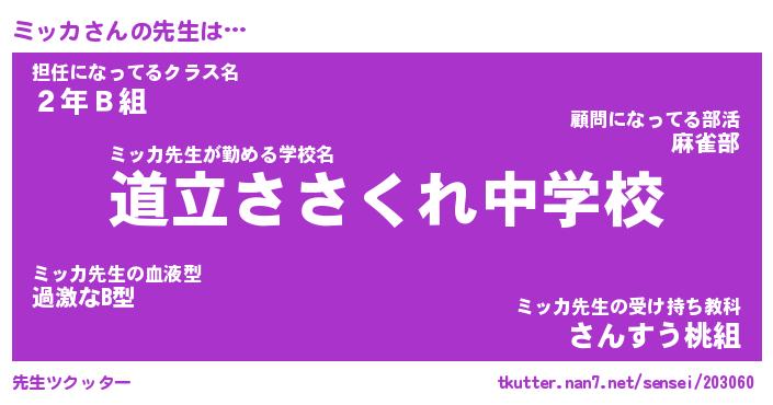 | 意味不明あだ名 | 『ペロリンミッカ』『ミッカフォーエバー』 |