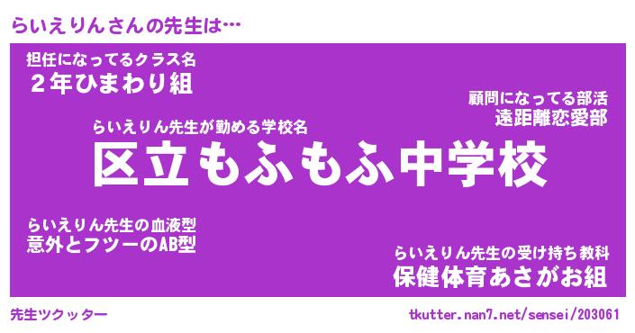 | 肩書あだ名 | 『らいえりん店長』『らいえりん大統領』 |