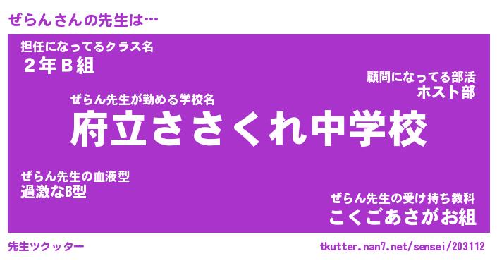 | 意味不明あだ名 | 『ペロリンぜらん』『ぜらんフォーエバー』 |