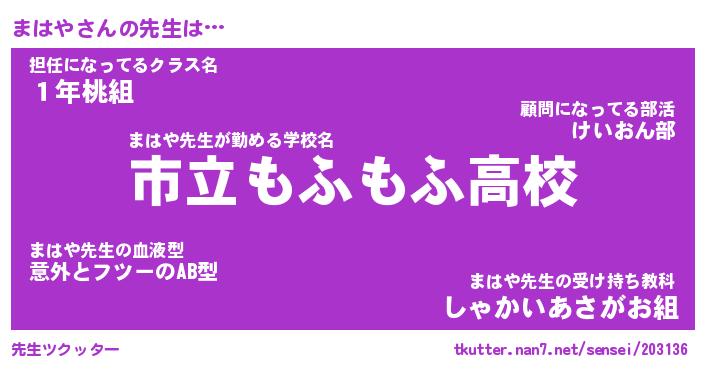 | ヘコむあだ名 | 『まはにゅー』『つくし』『まはっぺ』 |