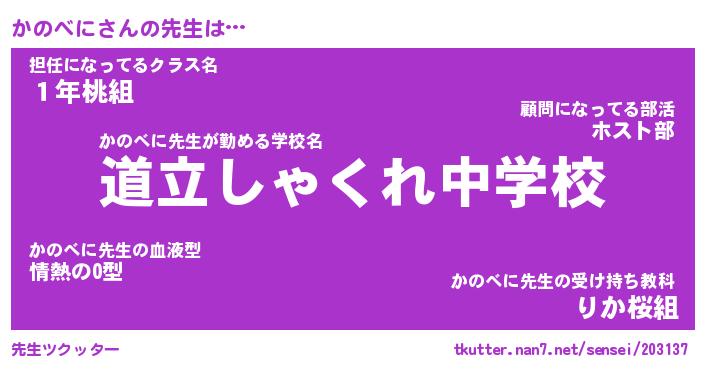 | 意味不明あだ名 | 『ペロリンかのべに』『永久保存かのべに』 |