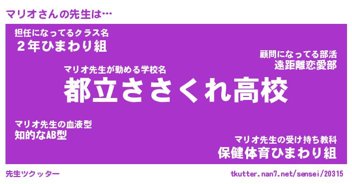 | 男性向けラノベタイトル風あだ名 | 『マリオの憂鬱』 |