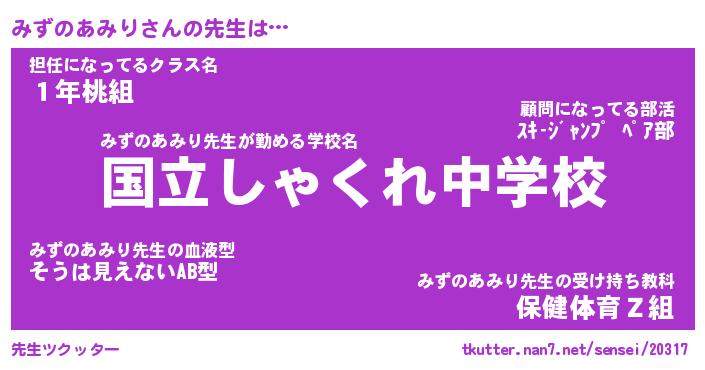 | 伝説のあだ名 | 『伝説のスナイパーみずのあみり』 |