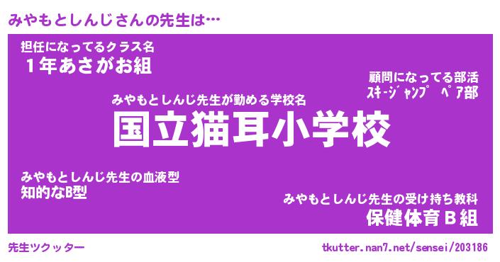 | ヘコむあだ名 | 『みやにー』『つくし』『みやを』 |