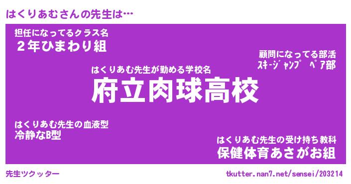 | ファンタジー風あだ名 | 『ハクフェル』『エターナルハクリアムー』 |