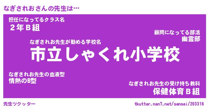 | 胡散臭い通販商品みたいなあだ名 | 『必ず成功する霊験あらたかなお札…その名も「なぎされお」』 |