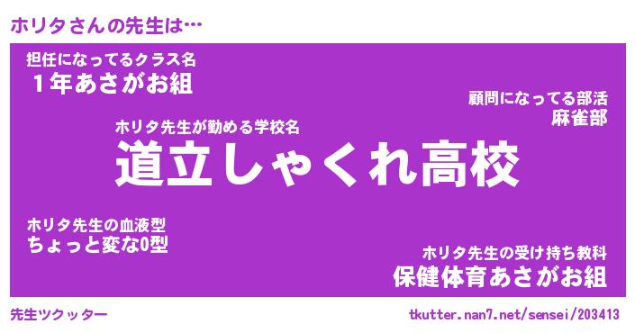 | ポケモン風あだ名 | 『ホリチュウ』『ホリタダネ』 |
