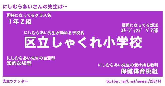 | 肩書あだ名 | 『にしむらあい御曹司』 |