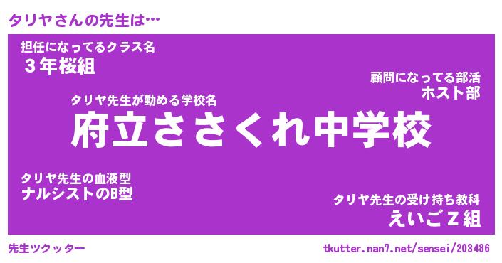 | 意味不明あだ名 | 『ペロリンタリヤ』『タリヤフォーエバー』 |