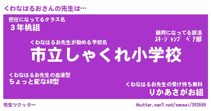 | 肩書あだ名 | 『くわなはるお御曹司』 |