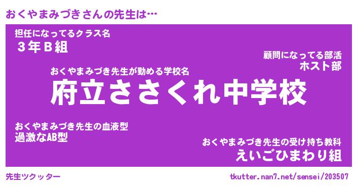 | ヘコむあだ名 | 『おくもー』『つくし』『おくを』 |