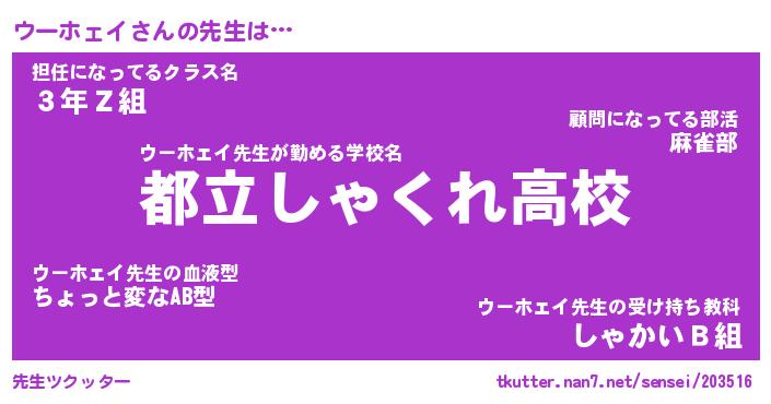 | 男性向けラノベタイトル風あだ名 | 『ウーホェイの憂鬱』 |