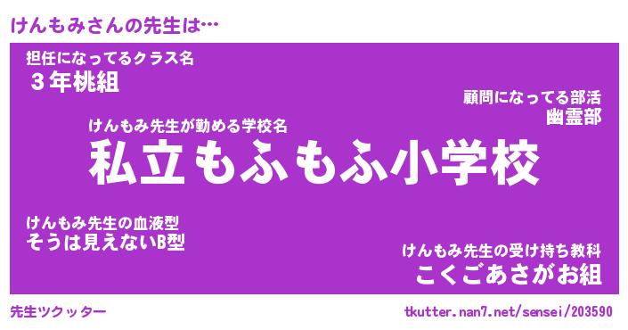 | 意味不明あだ名 | 『ペロリンけんもみ』『永久保存けんもみ』 |