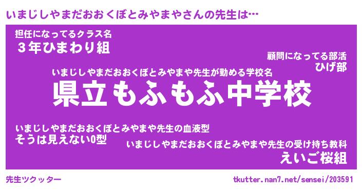 | 欧米人風あだ名 | 『マイケルいまじしやまだおおくぼとみやまや』 |