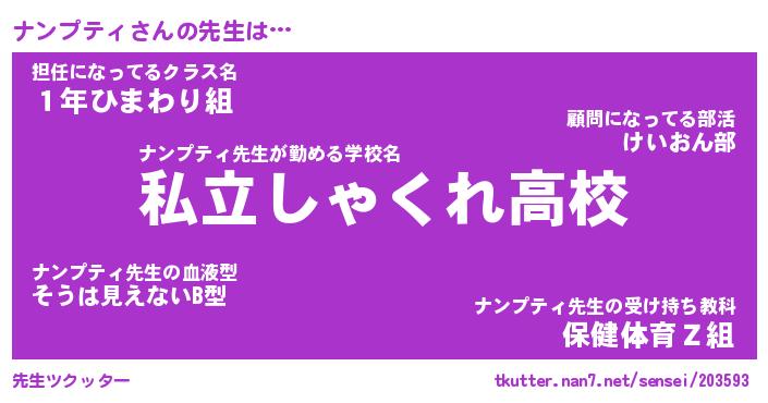 | ファンタジー風あだ名 | 『ナンフェル』『エターナルナンプティー』 |