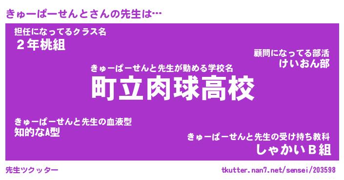 | ヘコむあだ名 | 『きゅふぇ~』『豆乳』『きゅお』 |