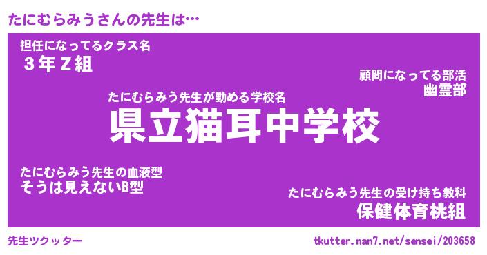 | ヒーロー風カッコイイあだ名 | 『スーパータニムラミウ』『銀牙騎士タニ』 |