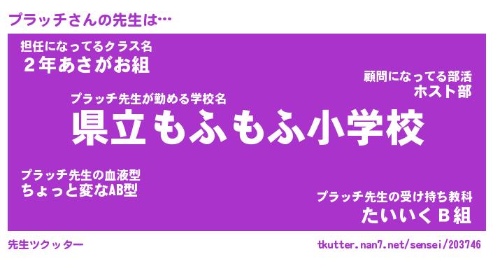 | 意味不明あだ名 | 『ペロリンプラッチ』『永久保存プラッチ』 |